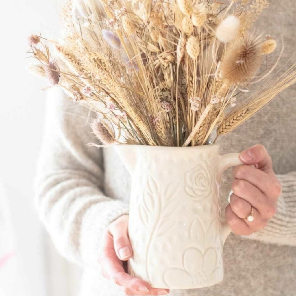 Eunoia significa “belleza en la mente y en el corazón”. Esta jarra está pensada para llenar tus espacios de armonía y calidez, convirtiendo cualquier rincón en un refugio con alma.